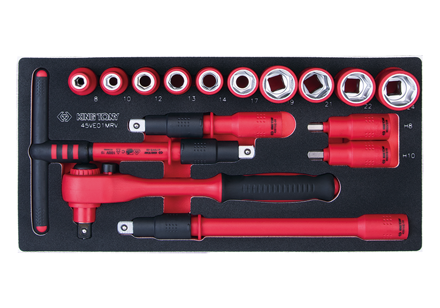 14件式 3/8" DR. 耐电压套筒工具车组套(EVA底盘)