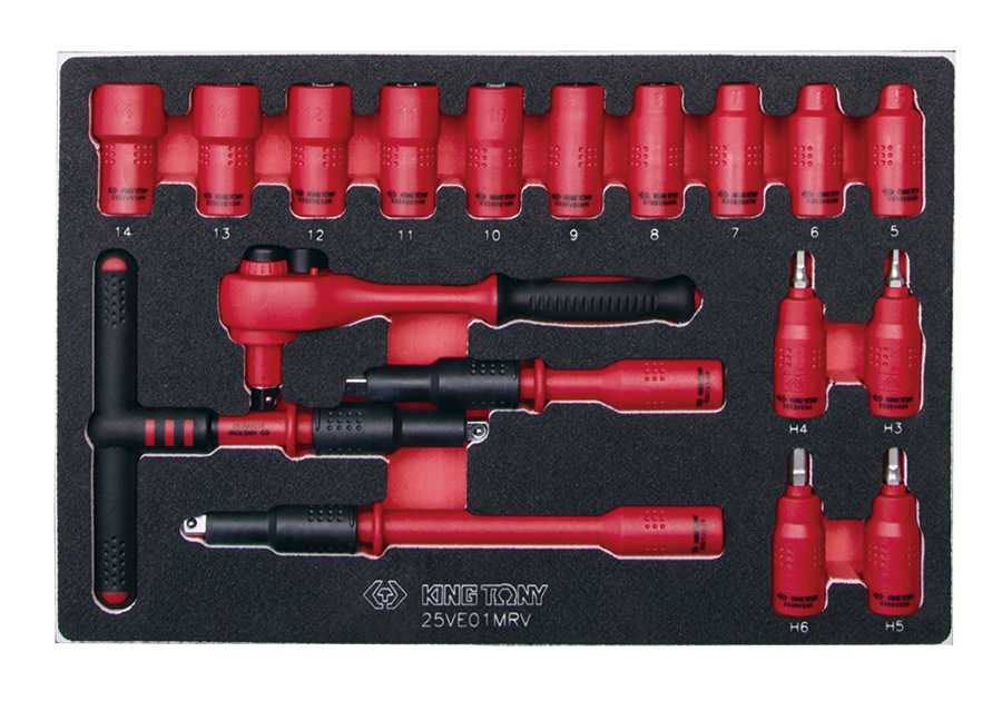14件式 3/8" DR. 耐电压套筒工具车组套(EVA底盘)