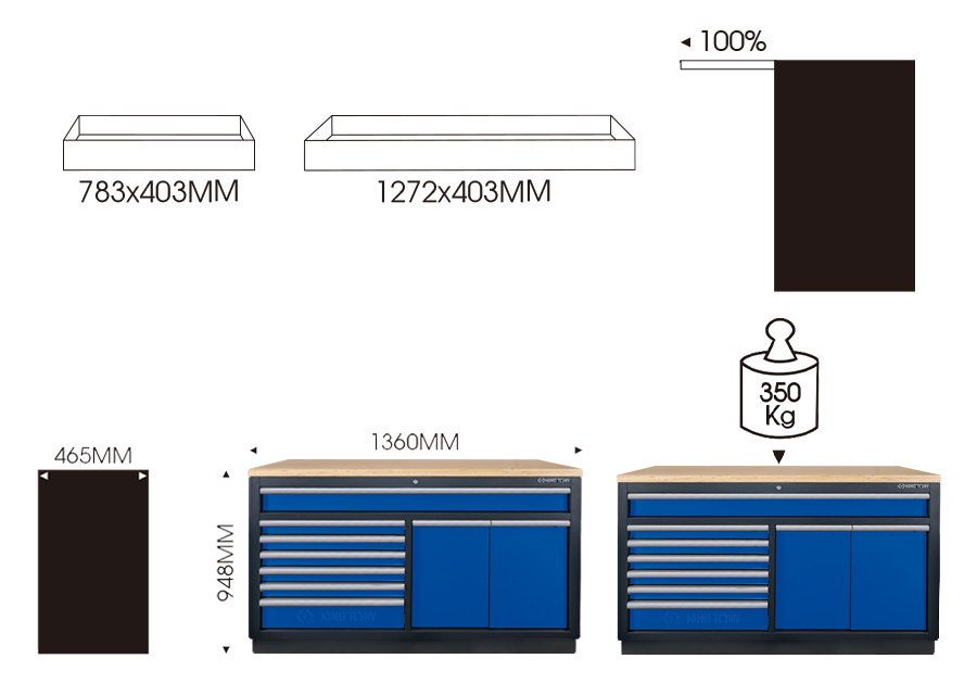 53吋 九抽下层柜(黑蓝)