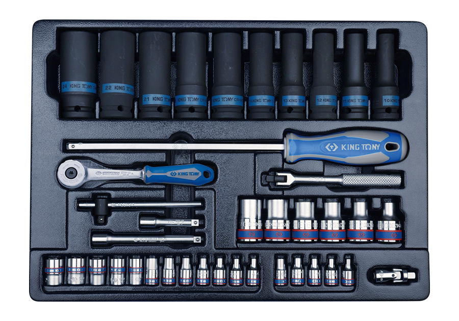 40件式 1/4"+1/2" DR. 工具箱(车)用公制六角套筒组