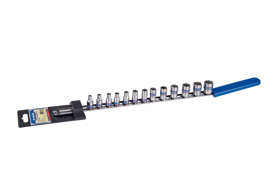 - Riel con 13 piezas de soporte de 1/4" DR.
