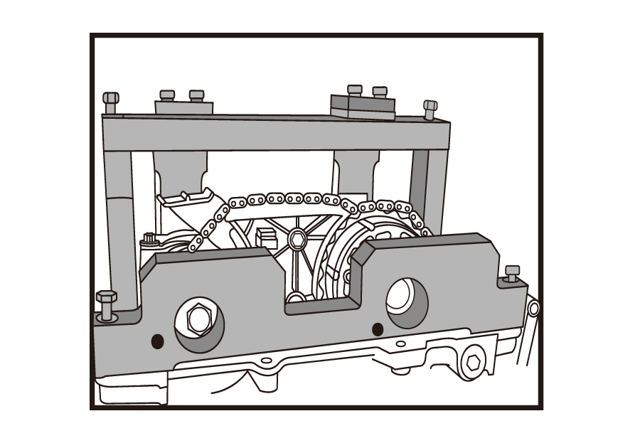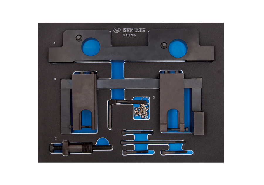 Incluye las herramientas de instalación de la unidad VANOS, las herramientas de bloqueo del árbol de levas y las herramientas de ajuste de pretensión de cadena para la posición TDC