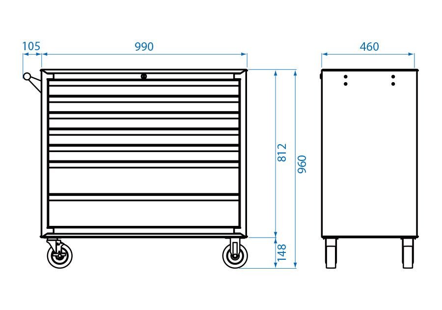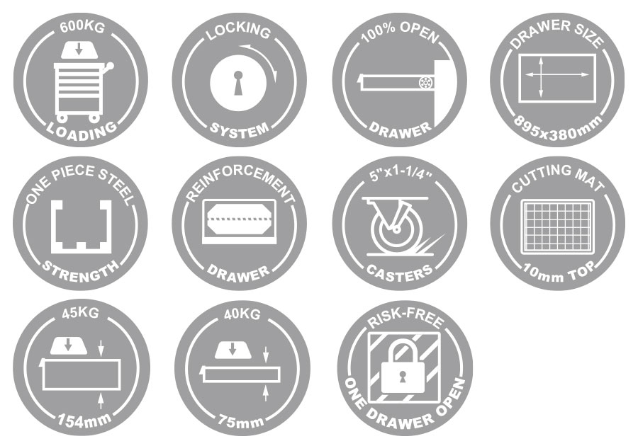 Carro de Herramientas Libre de Riesgo de 7 Cajones (Grande)
