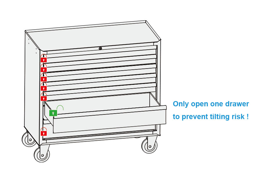 ¡Solo abre un cajón para evitar riego de inclinación!