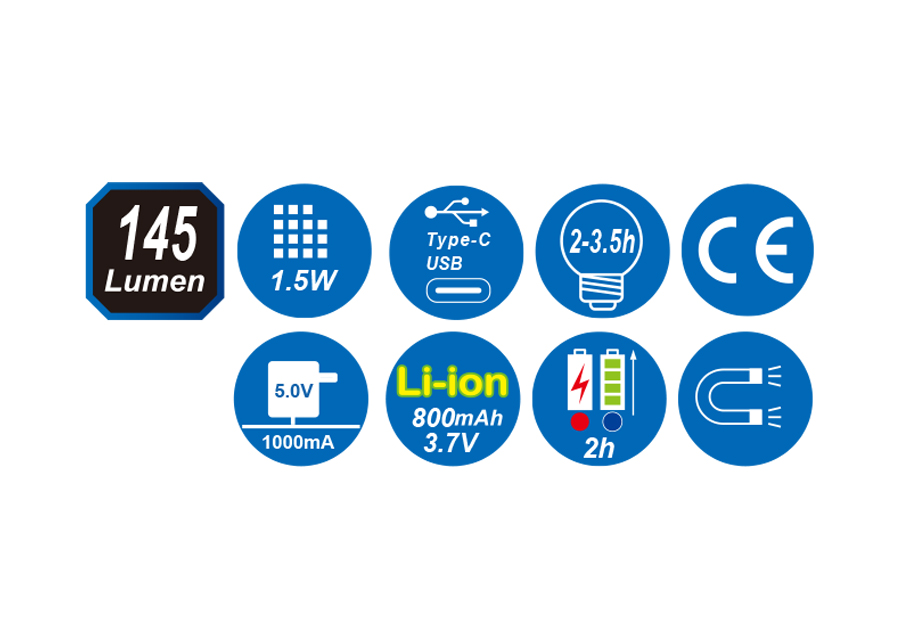 Brightness: 145 Lumen (lm), white light color, kelvin: 7200K