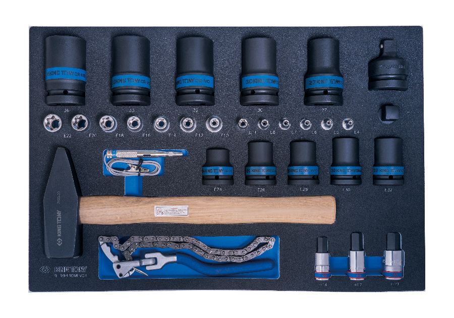 QRcode-9-99430MFV01-31 PC. Impact Sockets & Star Sockets & Oil Filter Chain Wrench Set for Trolley (EVA FOAM)